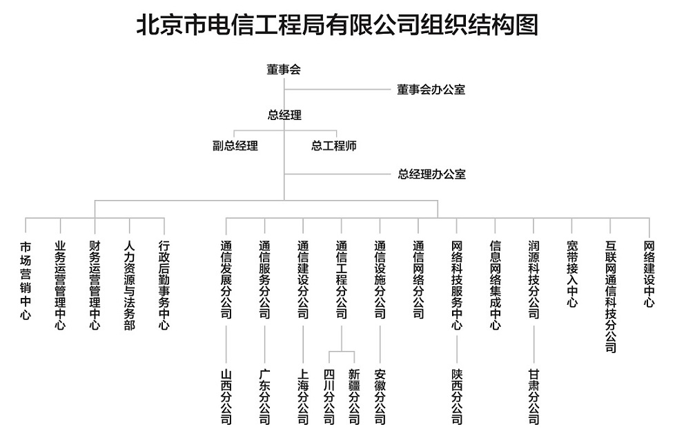 北京市電信工程局有限公司始建于1955年9月1日,是北京市第一家專(zhuān)業(yè)的通信工程施工企業(yè),曾隸屬中國(guó)電信、中國(guó)網(wǎng)通及中國(guó)聯(lián)通的國(guó)有企業(yè)。2008年12月成功改制,是中網(wǎng)聯(lián)通信發(fā)展集團(tuán)有限公司全資子公司。
