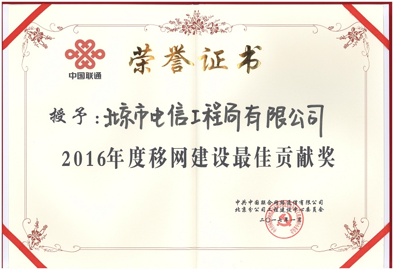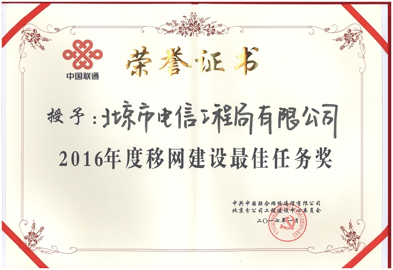 2016年度移網(wǎng)建設(shè)最佳任務(wù)獎(jiǎng)