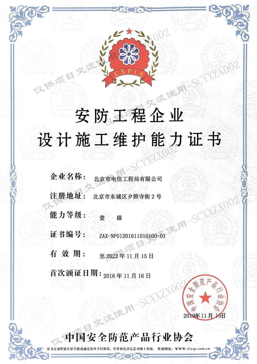 安防工程企業(yè)設(shè)計(jì)施工維護(hù)能力證書
