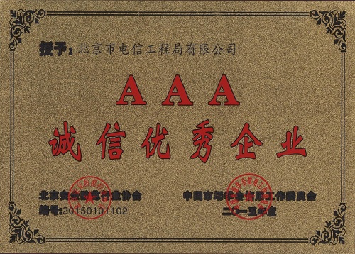 2015年度AAA級(jí)誠(chéng)信優(yōu)秀企業(yè)