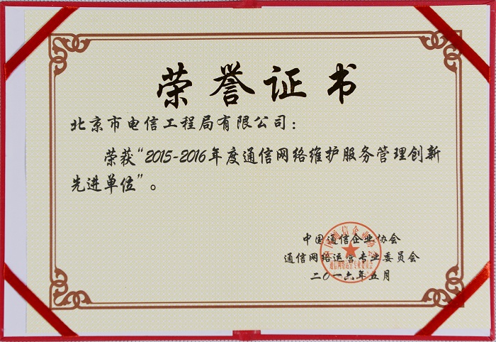 2015-2016年度通信網(wǎng)絡(luò)維護(hù)服務(wù)管理創(chuàng)新先進(jìn)單位